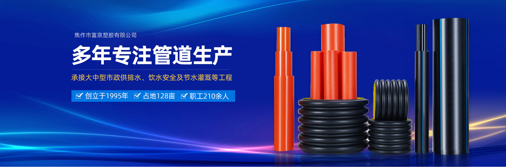 - 焦作市富泉塑胶有限公司,创立于1995年,是一家集研发、设计、生产、销售为一体的大型管材企业。公司位于太极故里、黄河之滨一一河南焦作温县。公司占地128亩,现有职工210余人,其中具有中技术职称的19人。生产、检验设备58台(套),包括PVC实壁管生产线11套、PE实壁管生产线12套、HDPE双壁波纹管生产线6套、PVC双壁波纹管生产线5套,检验设备14台(套)。主要产品有:Φ20mm-630mm、各种压力规格的PVCU、PVC-M、PE给水管材,PVC-U节水灌溉管材,HDPE燃气和矿用管材,DN200-800mm的HDPE、PVC双壁波纹管及各种喷灌、滴灌工程材料。承接大中型市政供排水、饮水安全及节水灌溉等工程?! 「蝗芙汗局厥硬返闹柿俊踩?、环保和节能,在同行业中率先完成了“新华节水产品认证”,全方面通过ISO9001:2008国际质量管理体系、IS014001:2004环境管理体系和OHSAS18001职业健康安全管理体系的一体化导入,并建立起规范的现代企业管理体系。公司以“质量”为先导,采用质量跟踪、多环节把关的方法,组建具有行业水准的企业技术检测中心,常年委托水利部节水灌溉设备检测中心、河南省产品质量监督检验院对产品跟踪检测,并由中国人民保险公司承保产品质量。公司连续多年被河南省水利厅确定为“安全饮水设备、节水灌溉设备”定点生产企业,并获得“中国名优产品”“质量、服务、信誉AAA企业”“河南省**产品”“河南省水利企业”“河南省守合同、重信用企业”等荣誉称号?! 「蝗芙汗炯岢帧坝没稀钡姆窭砟?,长期以来,全方面关注客户价值,不断提升服务水平。服务队伍常年为客户的产品设计、施工、安装提供合理的方案和全程细致、周到、**、快捷的技术服务。公司自成立以来,一直坚持以人为本的宗旨,塑造企业形象,并致力于新产品的开发,凭借雄厚的技术开发能力,先进的工艺制造流程,严格的质量管理保证体系,优良的售后服务网络,已成为河南省大的饮水、灌溉及排水管材设备制造商。产品畅销全国,而且还以公司雄厚的综合实力在业界中占据着重要的地位。